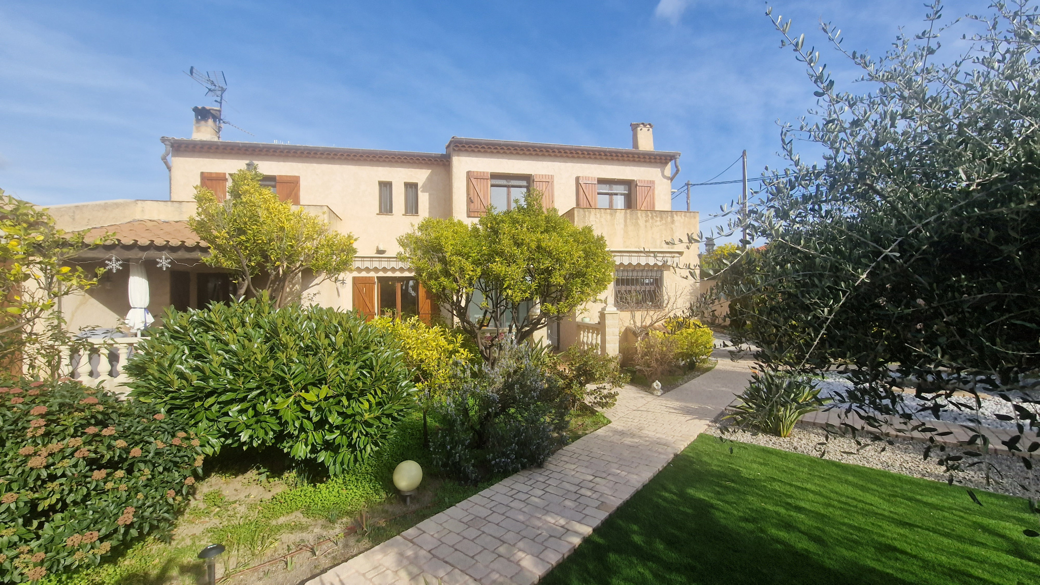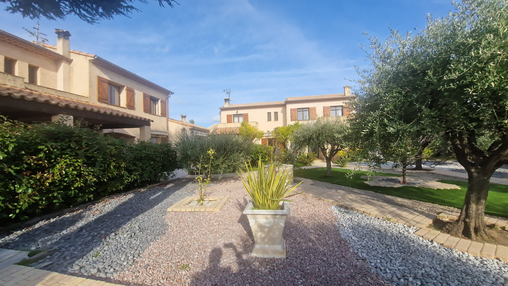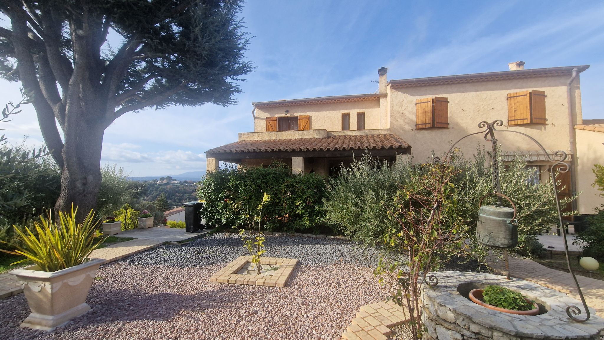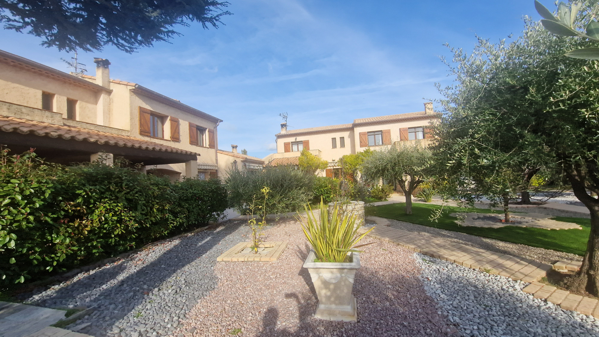 Une propriété de 3 maisons mittoyennes de 275 m² habitable bénéficiant de 230 m² de garage sur une parcelle de 7 963 m² avec piscine privative. Une première villa de 117 m² composé d'une entrée de 9 m², d'un séjour / salle à manger de 31 m², une cuisine indépendante de 9.42 m², un WC indépendant, une véranda de 5.50 m², une terrasse. A l'étage, 3 chambres (9.42 m², 8.20 m²) dont une chambre parentale de 16.35 m², une salle de bains de 5.40 m², une salle de douche de 5.10 m², un WC indépendant. Un garage principale de 73 m², une cave à vin de 11 m², un débarras de 12.48 m², un local à bois de 8.50 m². Une deuxième villa de 42 m² configuré en 2 pièces, composé d'une entrée de 3 m², une chambre de 11 m², une salle de douche avec WC de 3.92 m², une cuisine ouverte sur le séjour de 23.80 m², une terrasse. Une troisième villa de 117 m² composé d'une entrée de 10.77 m², un séjour / salle à manger de 31 m², une cuisine séparée de 10.60 m², une salle de douche avec WC de 4 m². A l'étage, 3 chambres (9.14 m², 10 m²) et une chambre parentale de 15.33 m², une salle de bain de 5 m², un WC indépendant. Un garage principale de 66 m², un local à bois de 8.40 m², une cave à vin de 7 m², une buanderie de 16.30 m², une cuisine d'été de 31.50 m². Un cadre rare et préservé : 7 963 m² de terrain, dont 5 000 m² sont en zone naturelle offrant une tranquilité absolue, cette propriété bénéficie d'un environnement préservé au calme et sans vis-à-vis. La partie aménagée propose une piscine de 10 m x 5 m, son pool-house, une pergola avec barbecue, un jardin arboré d'oliviers, un bassin à poissons, le tout offrant une vue totalement dégagée sur le Baou.
