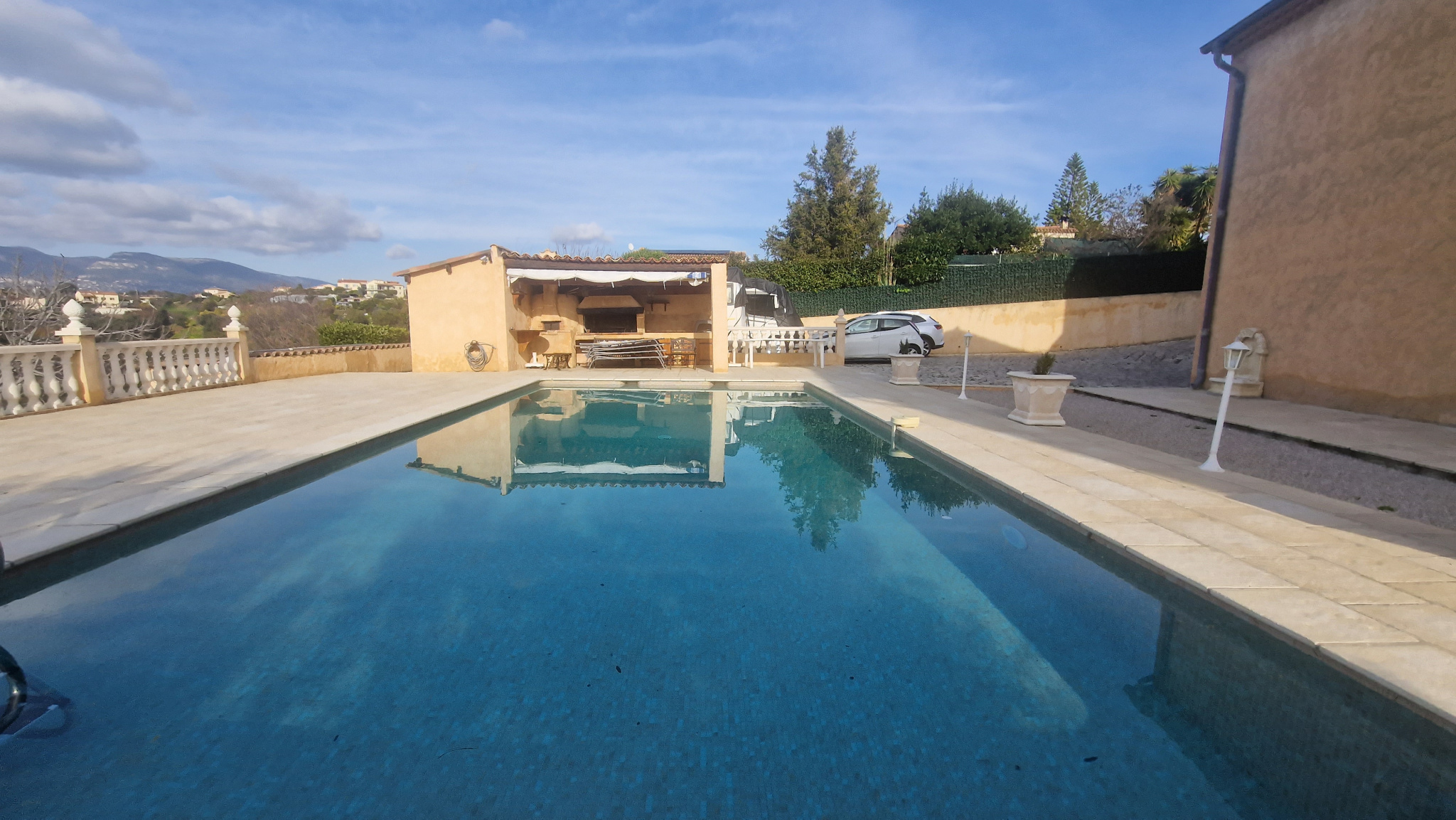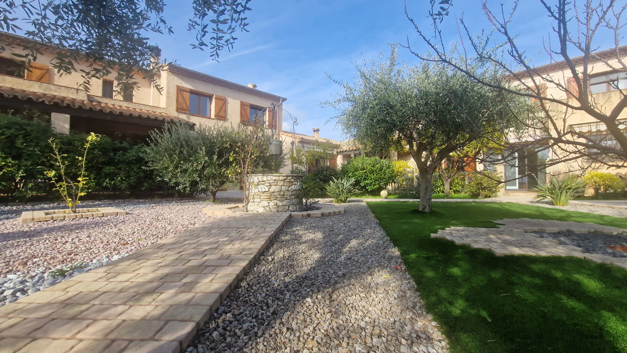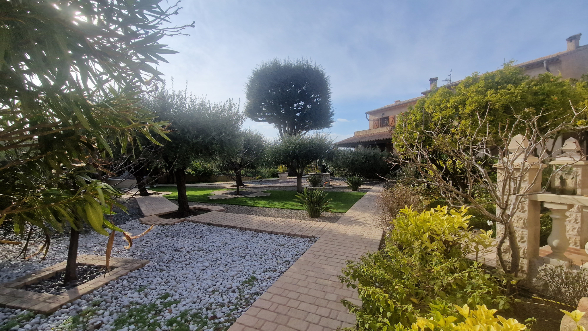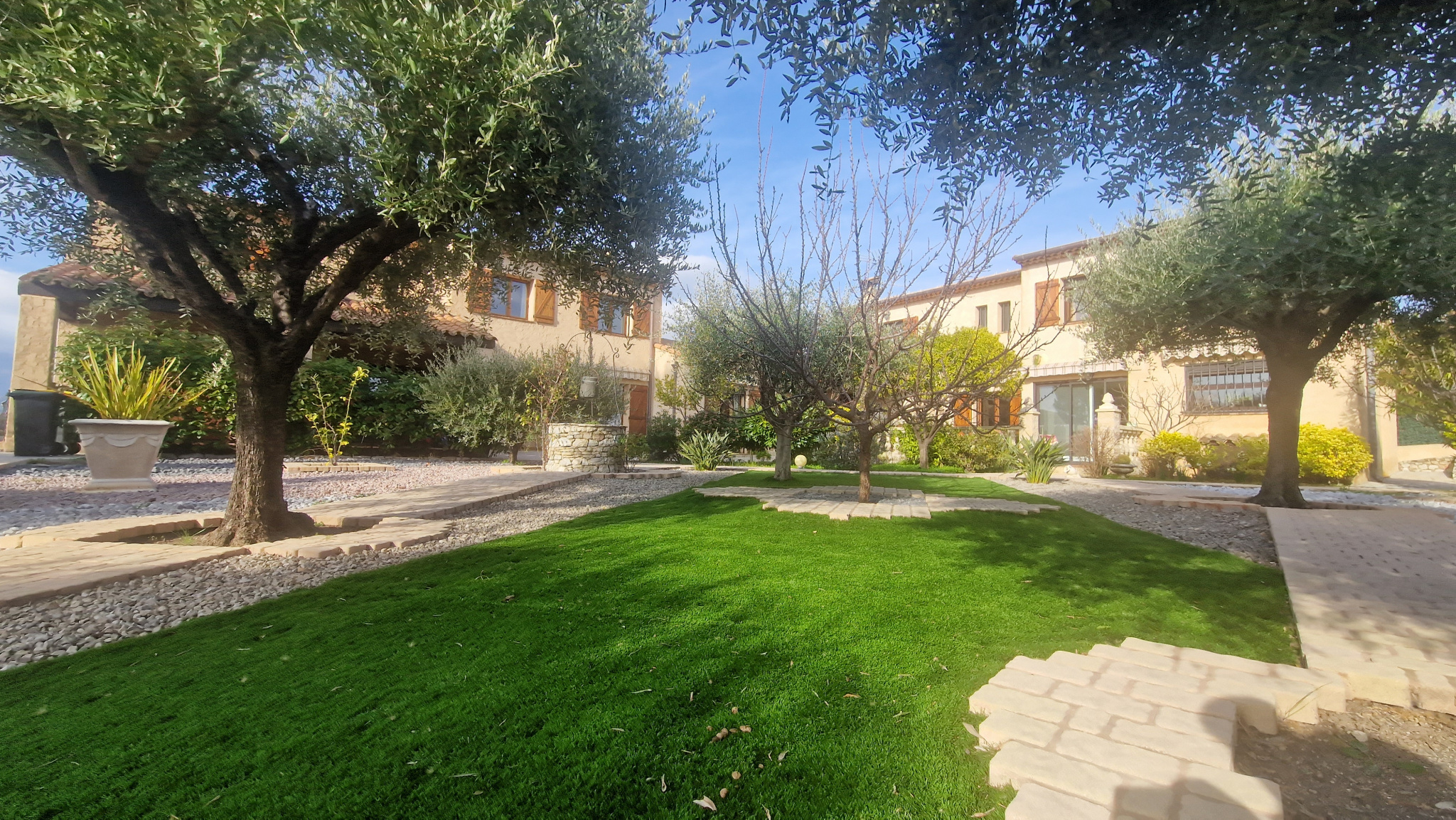 Une propriété de 3 maisons mittoyennes de 275 m² habitable bénéficiant de 230 m² de garage sur une parcelle de 7 963 m² avec piscine privative. Une première villa de 117 m² composé d'une entrée de 9 m², d'un séjour / salle à manger de 31 m², une cuisine indépendante de 9.42 m², un WC indépendant, une véranda de 5.50 m², une terrasse. A l'étage, 3 chambres (9.42 m², 8.20 m²) dont une chambre parentale de 16.35 m², une salle de bains de 5.40 m², une salle de douche de 5.10 m², un WC indépendant. Un garage principale de 73 m², une cave à vin de 11 m², un débarras de 12.48 m², un local à bois de 8.50 m². Une deuxième villa de 42 m² configuré en 2 pièces, composé d'une entrée de 3 m², une chambre de 11 m², une salle de douche avec WC de 3.92 m², une cuisine ouverte sur le séjour de 23.80 m², une terrasse. Une troisième villa de 117 m² composé d'une entrée de 10.77 m², un séjour / salle à manger de 31 m², une cuisine séparée de 10.60 m², une salle de douche avec WC de 4 m². A l'étage, 3 chambres (9.14 m², 10 m²) et une chambre parentale de 15.33 m², une salle de bain de 5 m², un WC indépendant. Un garage principale de 66 m², un local à bois de 8.40 m², une cave à vin de 7 m², une buanderie de 16.30 m², une cuisine d'été de 31.50 m². Un cadre rare et préservé : 7 963 m² de terrain, dont 5 000 m² sont en zone naturelle offrant une tranquilité absolue, cette propriété bénéficie d'un environnement préservé au calme et sans vis-à-vis. La partie aménagée propose une piscine de 10 m x 5 m, son pool-house, une pergola avec barbecue, un jardin arboré d'oliviers, un bassin à poissons, le tout offrant une vue totalement dégagée sur le Baou.